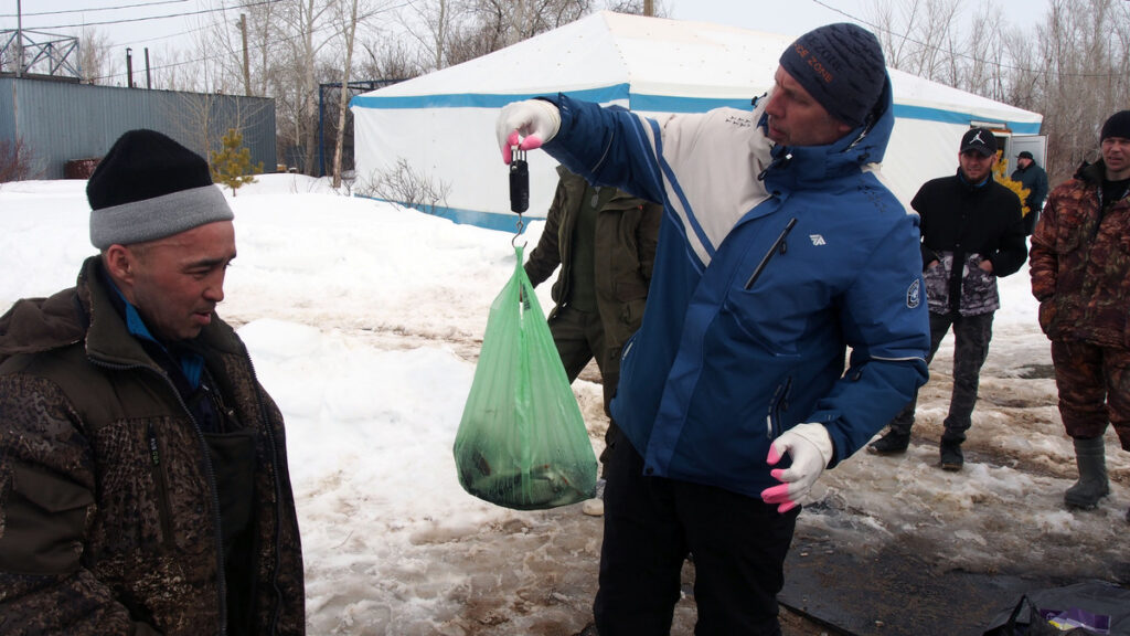 Самую большую рыбину поймал Сергей Попов — щуку весом почти полтора килограмма. Самую маленькую принес в коробочке Бакитжан Калмухамедов — окунек в шесть сантиметров. Примечательно, что за маленькую рыбу аплодисментов было больше, чем за большую. Правда, и смеха много.
