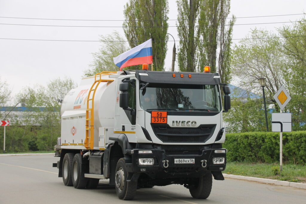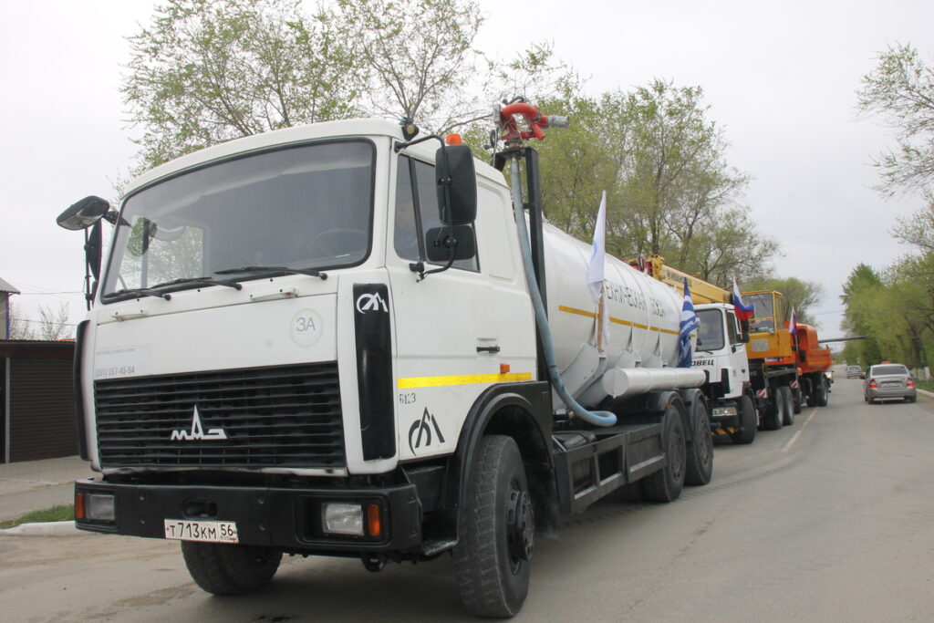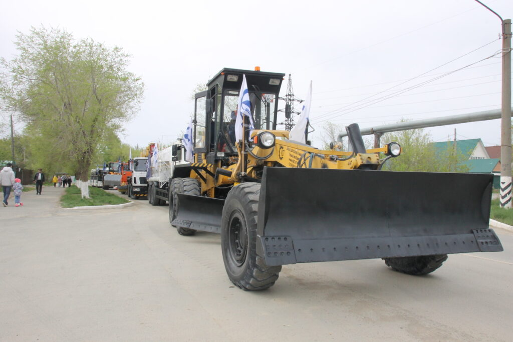 Первой на центральную улицу города вышла колонна транспорта АО «Оренбургские минералы». Это лишь небольшая часть «технологического сердца» комбината – гордости и опоры города. Самосвалы-тяжеловесы, автогрейдеры, бульдозеры и другая мощная техника, без которой немыслима работа комбината, продолжает нести трудовую вахту в карьере.