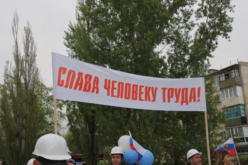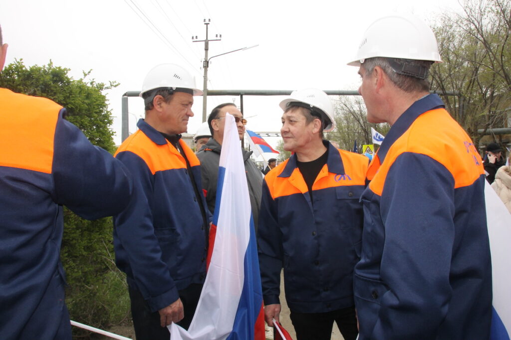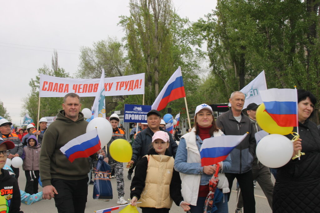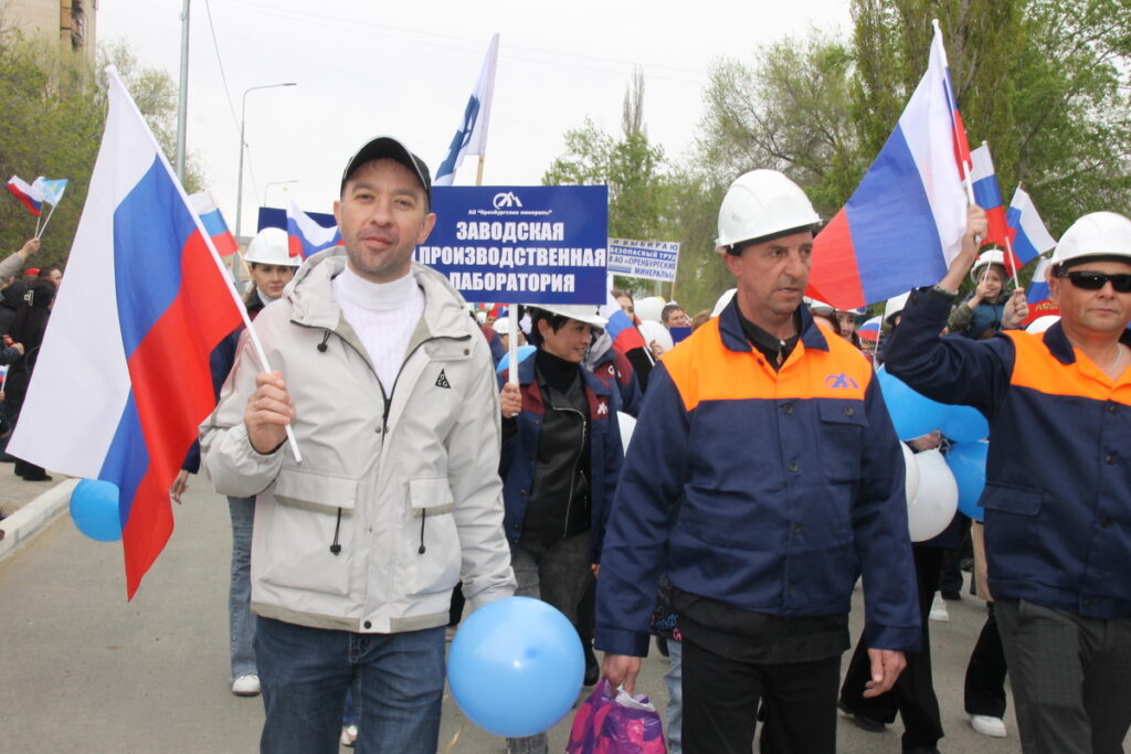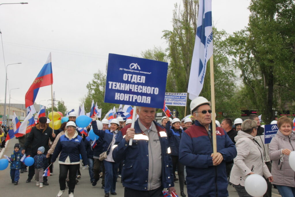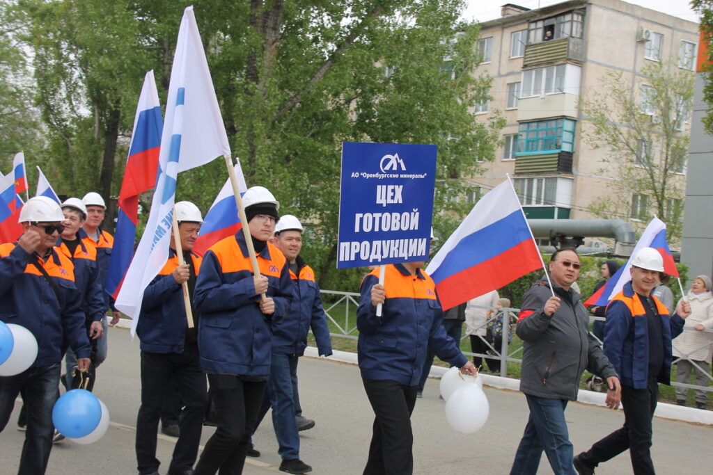 Представители комбината прошли с бело-голубыми флагами предприятия и главным лозунгом «Оренбургских минералов» 2025 года «Открывая новые горизонты». Но главные девизы Первомая остаются неизменными – «Мир во всем мире!», «Слава человеку труда!». Труд и мир – основа жизни, основа всего, что и читалось на транспарантах в руках ясненцев.