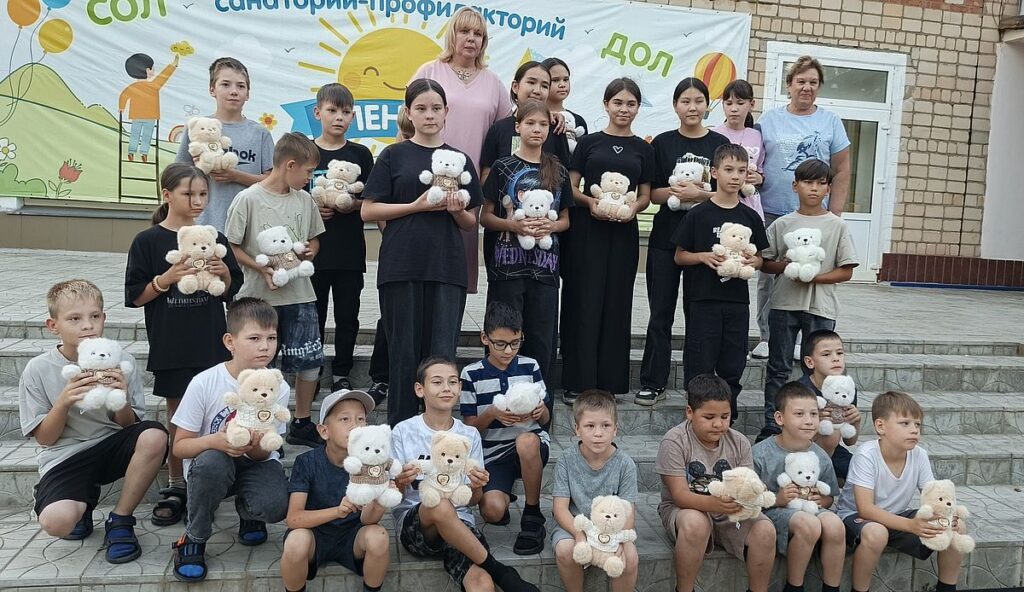 Воспитанники детского дома города Орска, впервые посетившие лагерь «Ленок», получили в качестве сувениров мягкие игрушки от председателя профкома АО «Оренбургские минералы» Веры Щадровой.