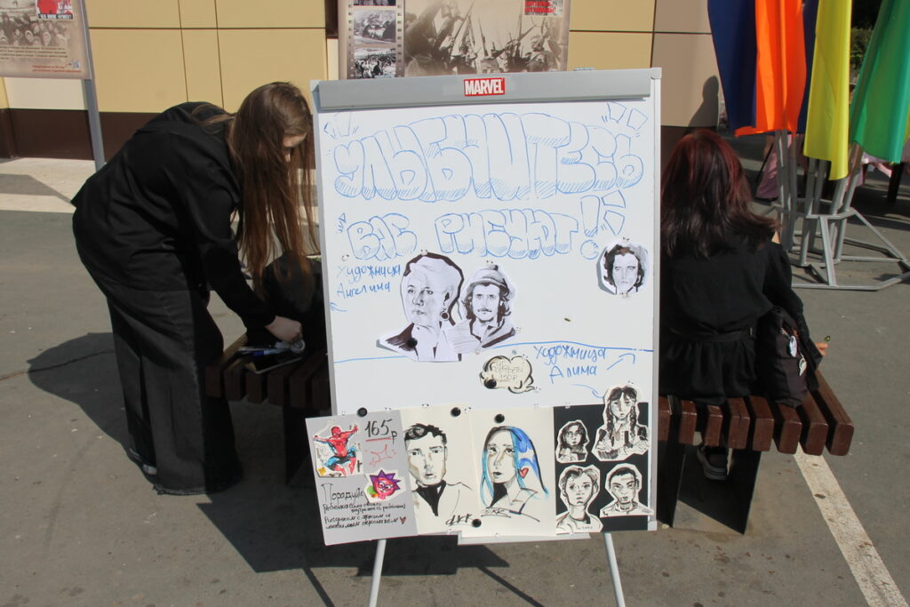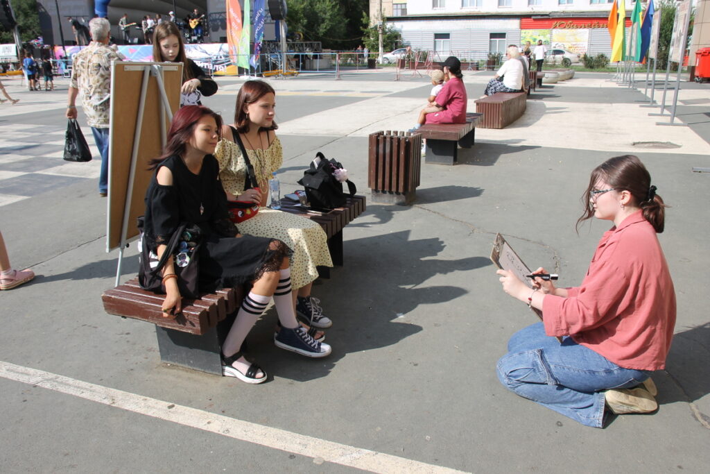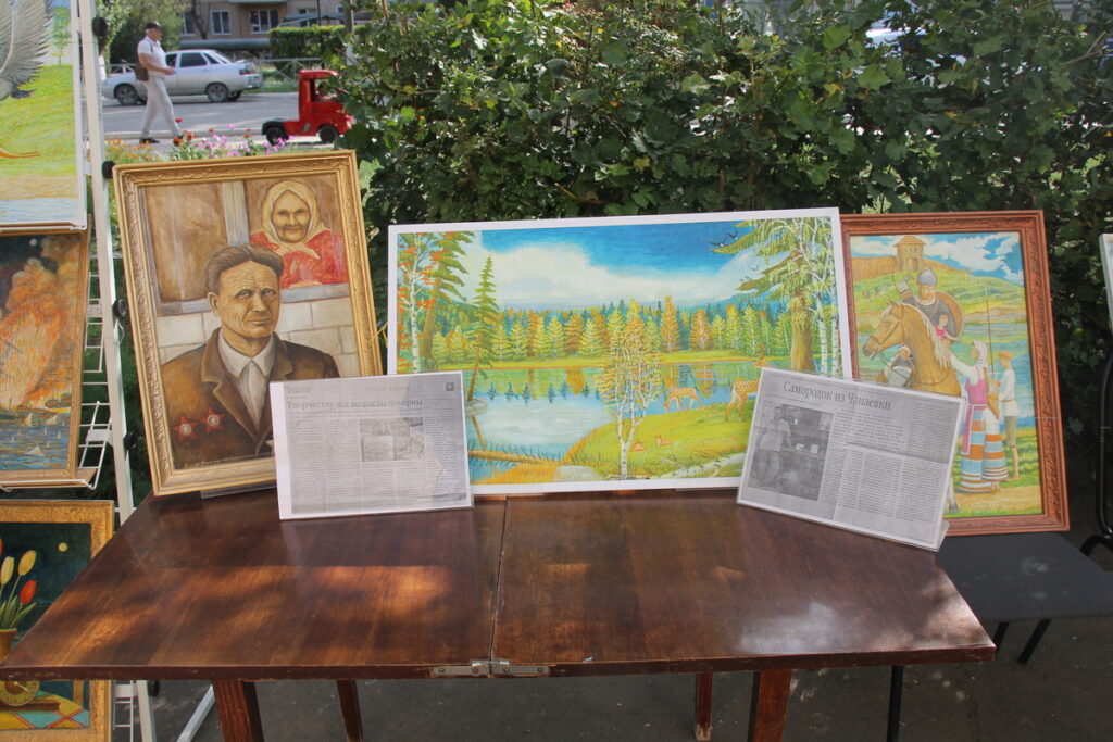 Известный в городе художник Анатолий Седов развернул вернисаж из своих самобытных полотен. А юные художницы Алима и Ангелина с ироническим взглядом на мир предложили горожанам жанр художественной пародии, вполне, кстати, добродушной.
