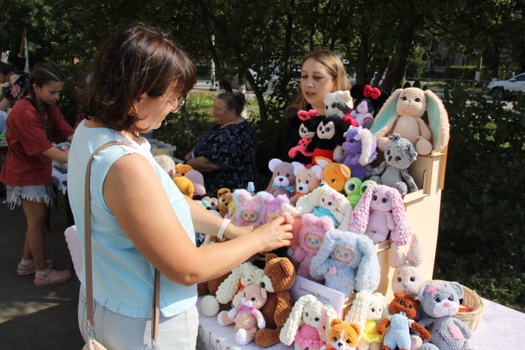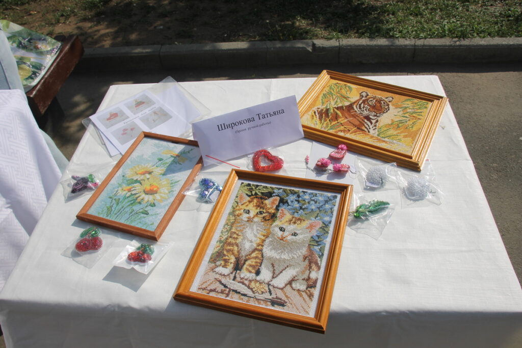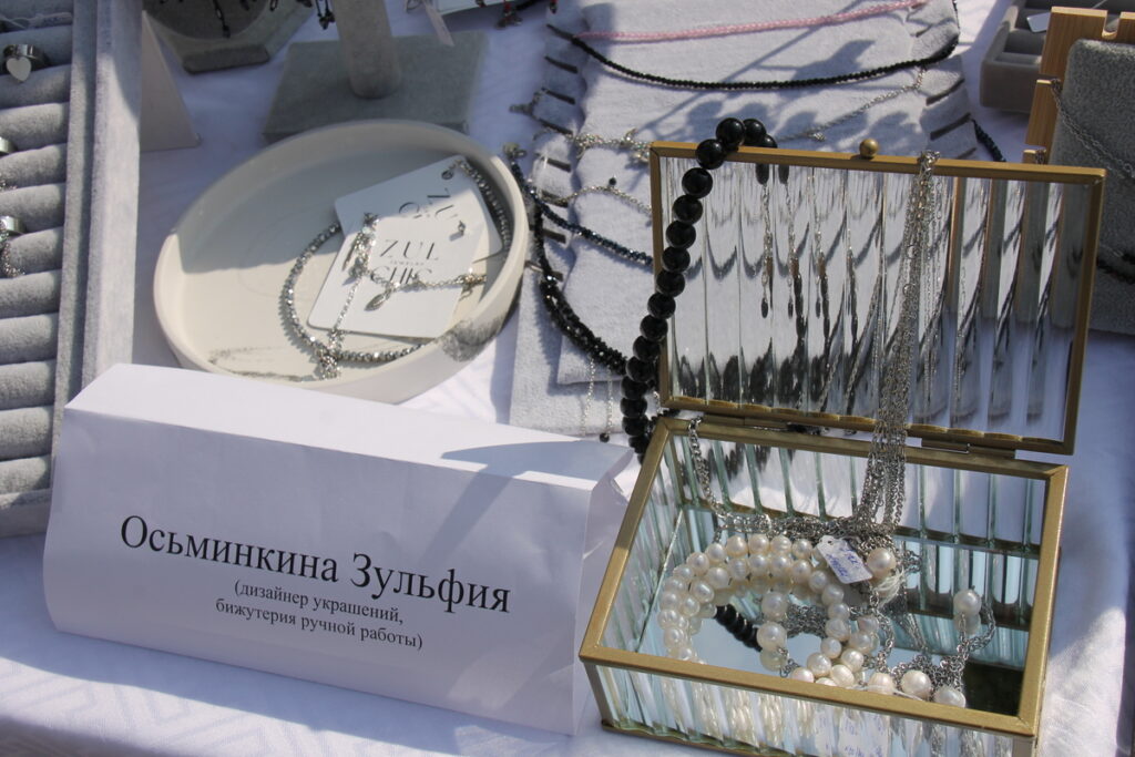 Ясненцы полюбовались и смогли приобрести забавные вязаные игрушки мастериц Татьяны Якорневой, Юлии Даниловой, Ирины Лисичкиной, завораживающие безделушки из эпоксидной смолы Жанны Виноградовой, редкой красоты изделия из газетной соломки (квиллинг) Татьяны Карповой. Свои шедевры из бисера продемонстрировала Тамилла Радионова, текстильные и вязаные куклы — Ирина Ковалева. Не смогли ясненцы пройти мимо дизайнерских украшений и бижутерии ручной работы Зульфии Осьминкиной, брошей ручной работы Татьяны Широковой.
