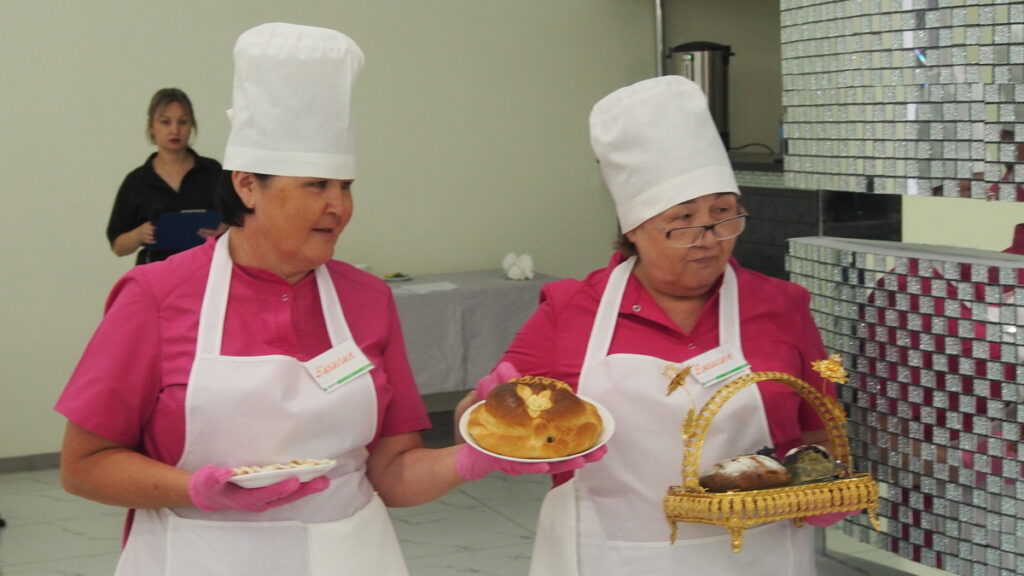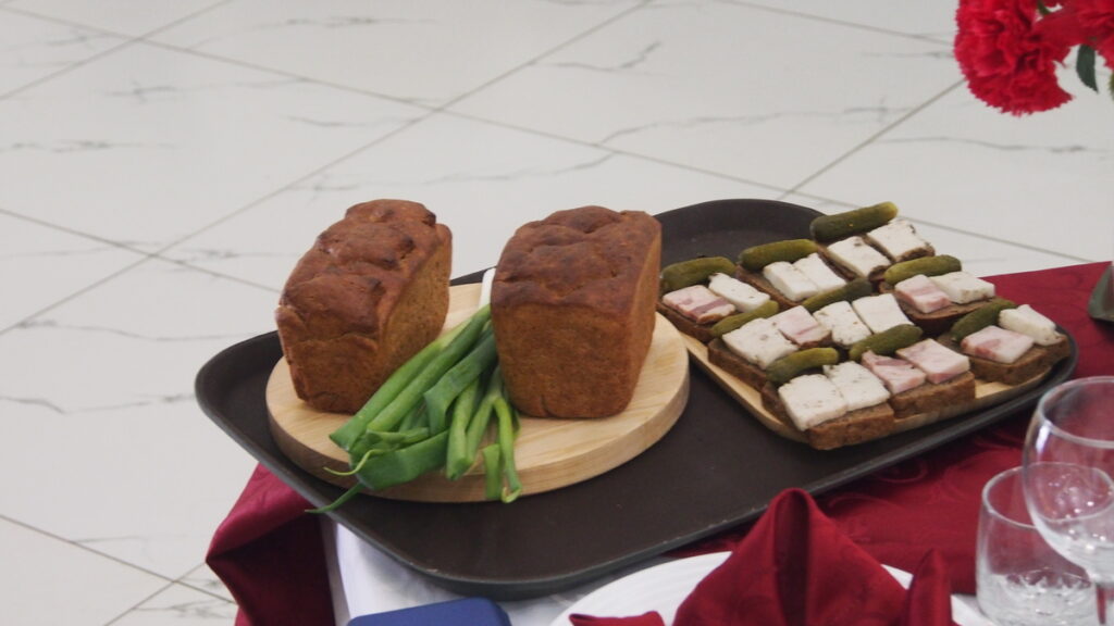 Домашним заданием для конкурсантов стала выпечка хлеба — главного продукта военного питания. Основным видом стал черный хлеб. Хотя внешне он выглядел похожим, ингредиенты для него использовались разные. Так что члены жюри во главе с председателем профсоюзного комитета комбината Верой Щадровой пробовали все на вкус.