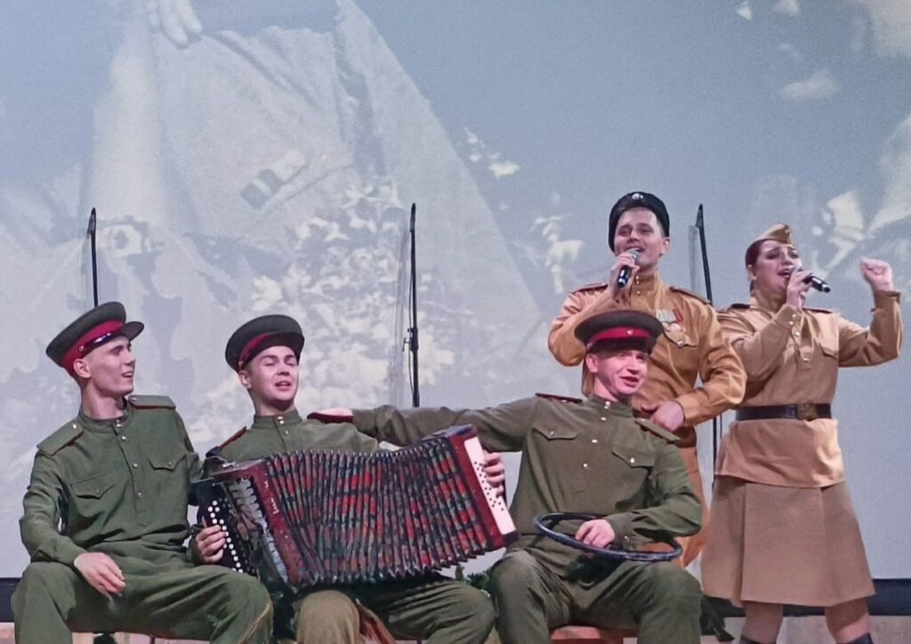 Особенно проникновенно прозвучали песни военных лет. Танцевальные номера сопровождались бурными овациями. Исполнялись хиты группы «Любэ», попурри на военно-патриотические произведения, диско-попурри на хиты современности, композиции «Полет на дельтаплане», «Земля в иллюминаторе», «Мечта», «Калинка», «Спасская башня». Прозвучала музыка из кинофильма «Аргонавты». Представлены были и этнические номера. Задорно исполнялись частушки под баян.