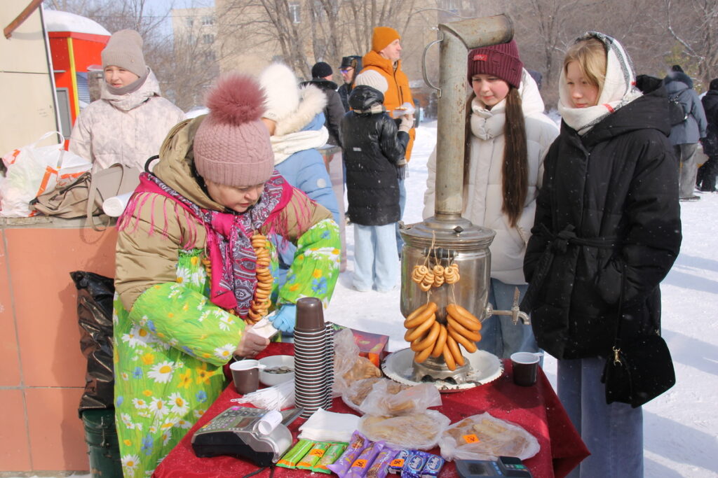 Согреться в морозный день помогали не только задорная развлекательная программа, но и горячий чай из самовара с блинами. На площади была организована праздничная торговля вкусной ароматной выпечкой.