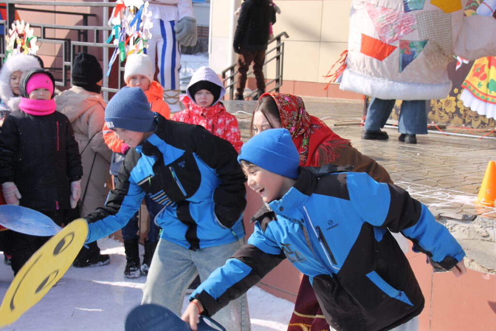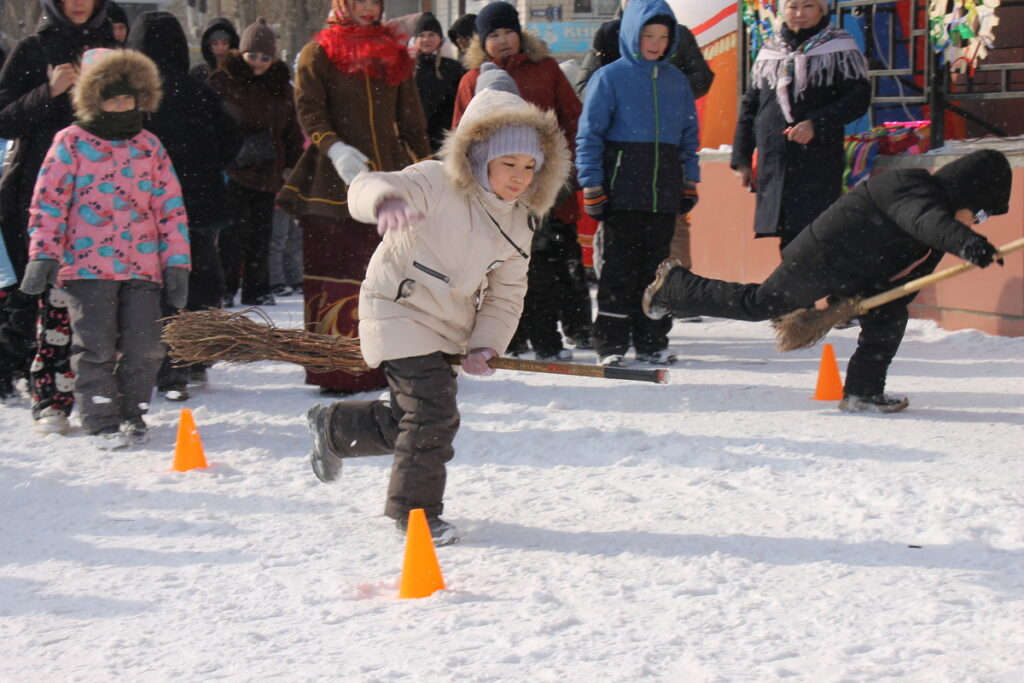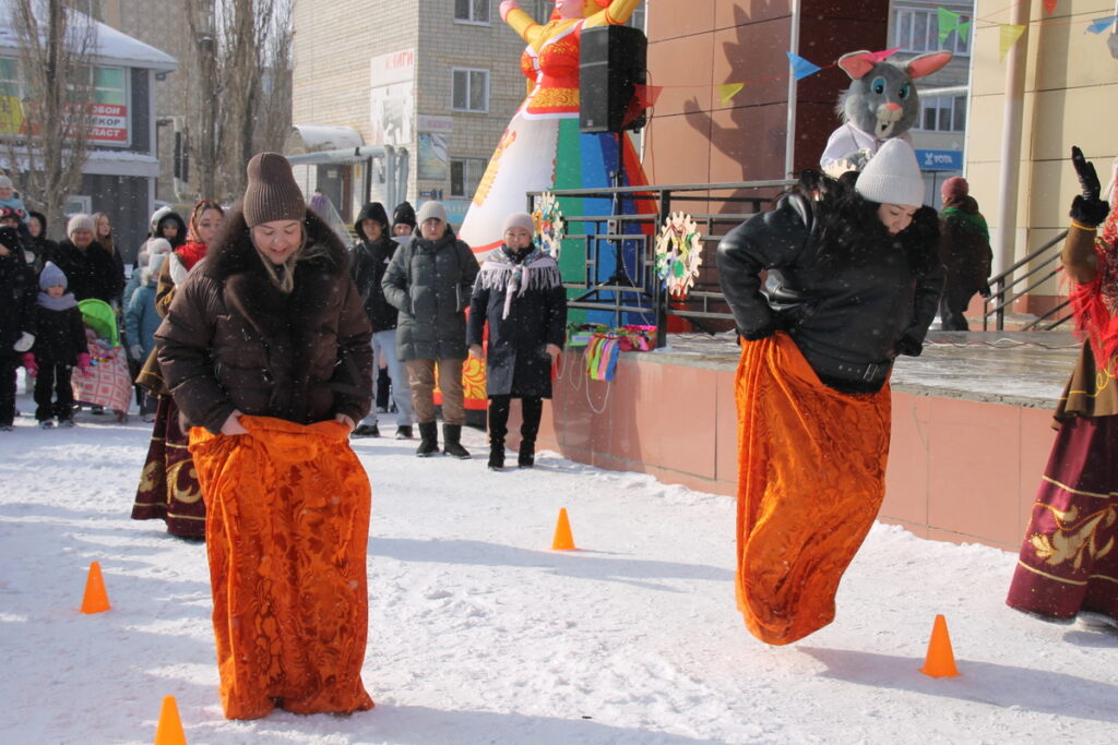 Веселую развлекательную программу подготовили для жителей работники культуры. Большие и маленькие ясненцы скакали на метле, прыгали в мешках, метали валенки, жонглировали «блинами», поднимали гири, состязаясь в силе, меткости, ловкости.